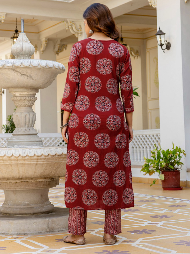 Women Printed Regular Mirror Work Pure Cotton Kurta with Palazzos & With Dupatta
