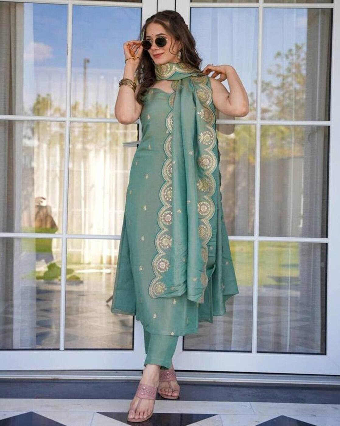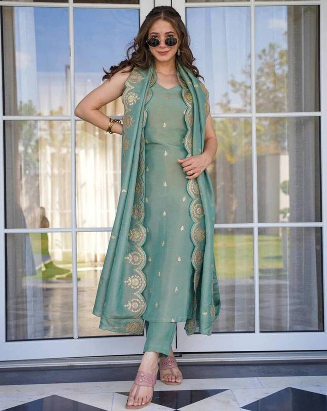The Kurta boasts a length of 44-45 inches, Paired with a 38-inches Pant and a 2.25 meter Dupatta, ensuring a perfect fit for every moments a statement at festivals with this unique and stylish ensemble. Embrace the festive spirit with our Super Design that combines comfort, fashion, and a touch of tradition. Don't miss out – elevate your festive wardrobe today.