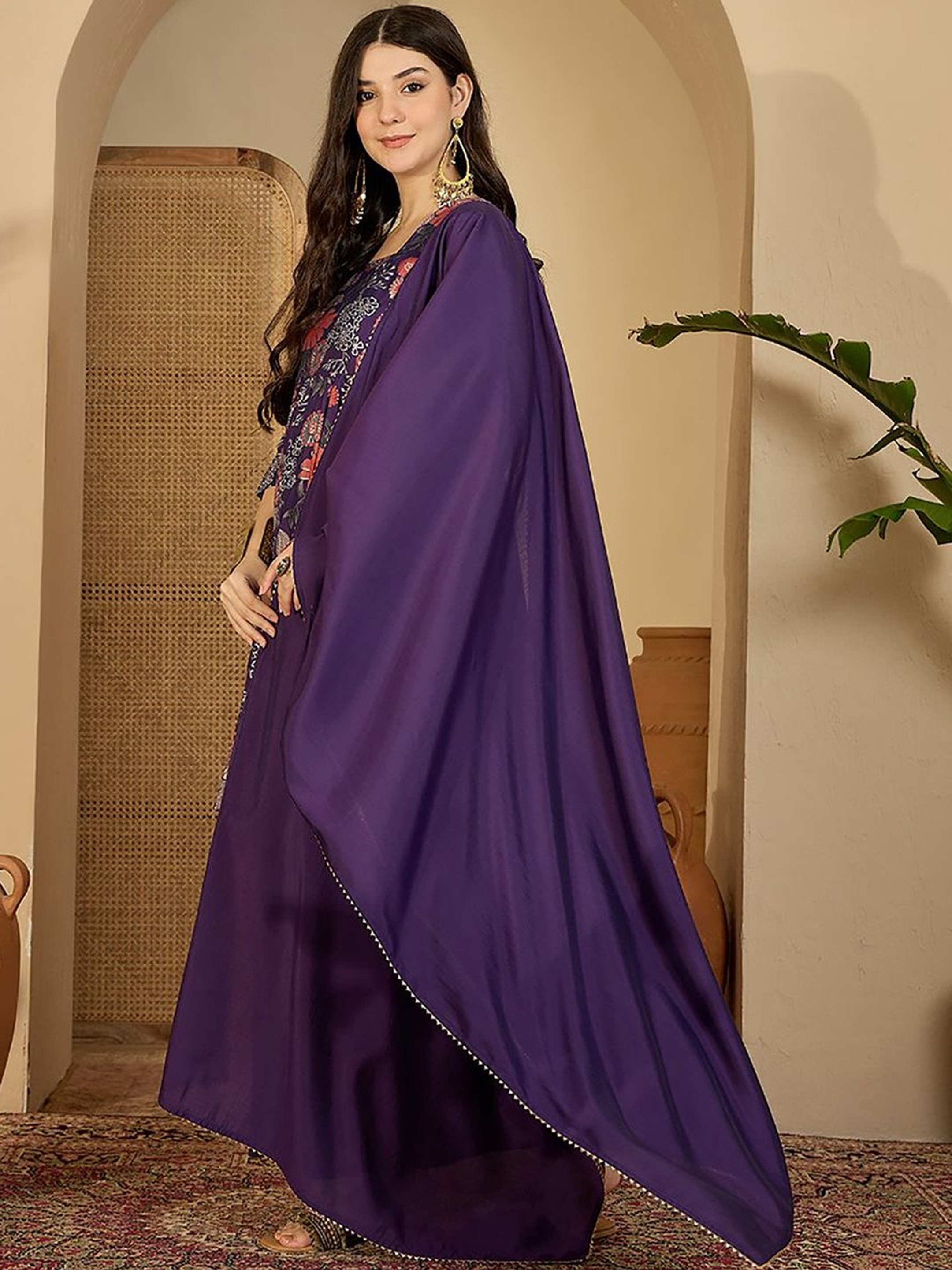 Available in rich colors, each item is designed to reflect traditional aesthetics while staying modern. This floral printed bell sleeves kurta is not just clothing; it's a statement piece for your wardrobe. At AROMIE, we offer affordable Indian fashion tailored for diverse styles. Shop this stunning three-piece set today and embrace the elegance it brings.