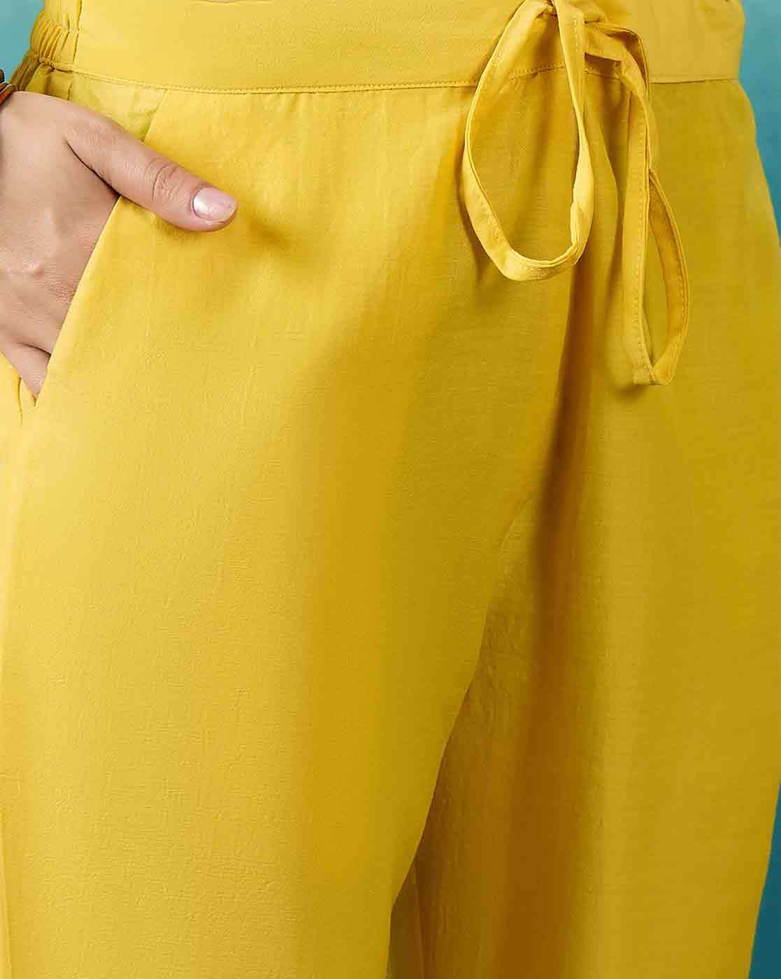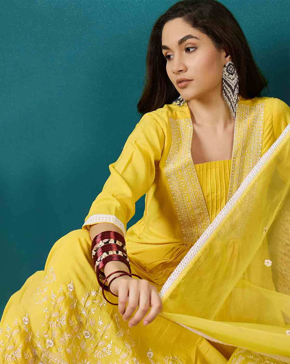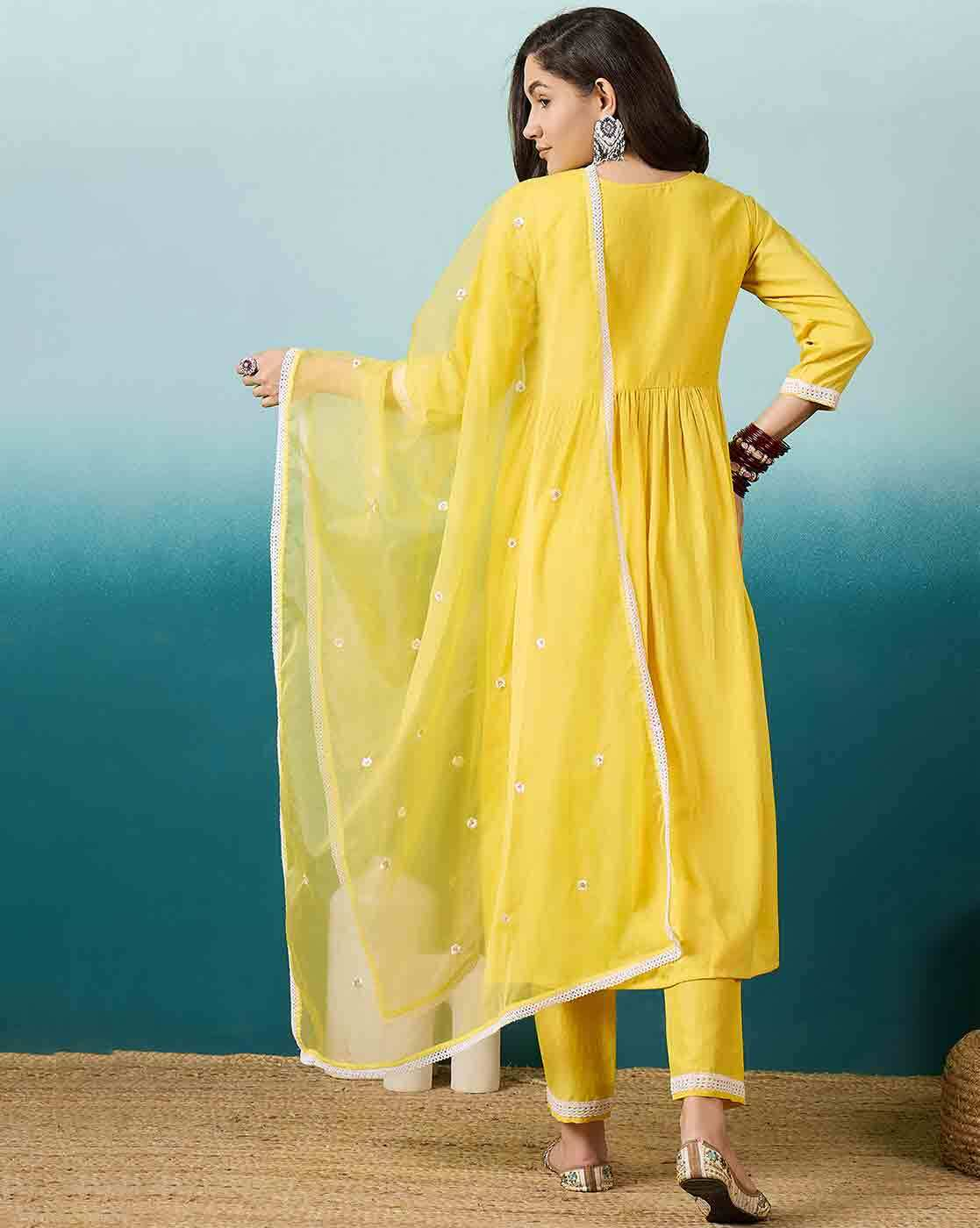 Aromie Floral Tiered Dress for Women - Yellow 3-Piece Kurtha