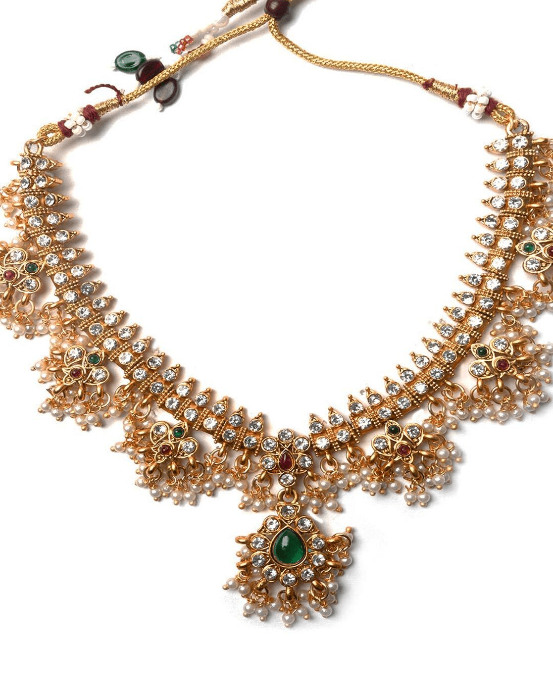 This ensemble is ideal for gifting or treating yourself to something special. It brings a touch of tradition and sophistication to any wardrobe. The vintage gold-plated necklace set helps you express a unique style in a crowd.