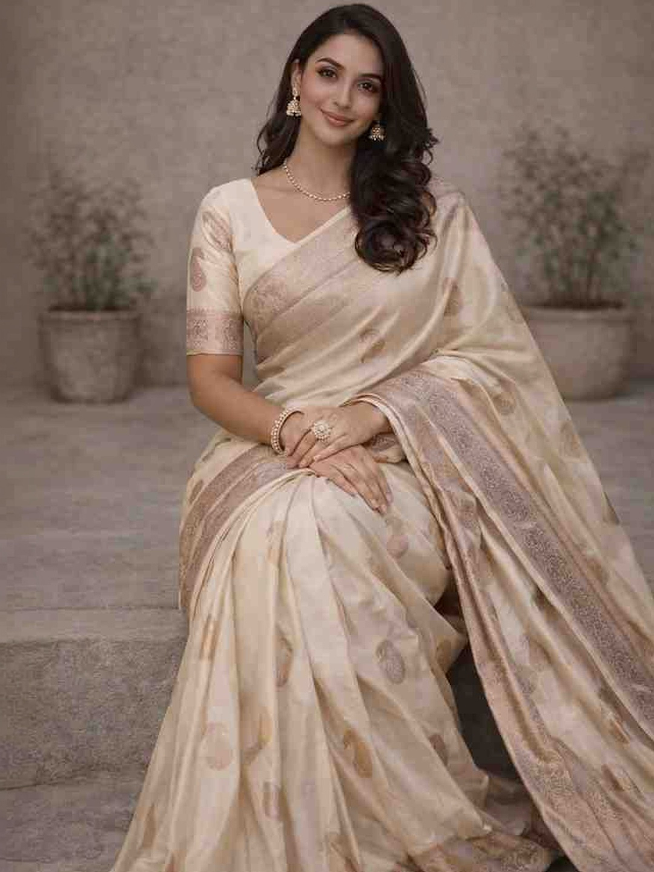 Cream Banarasi saree