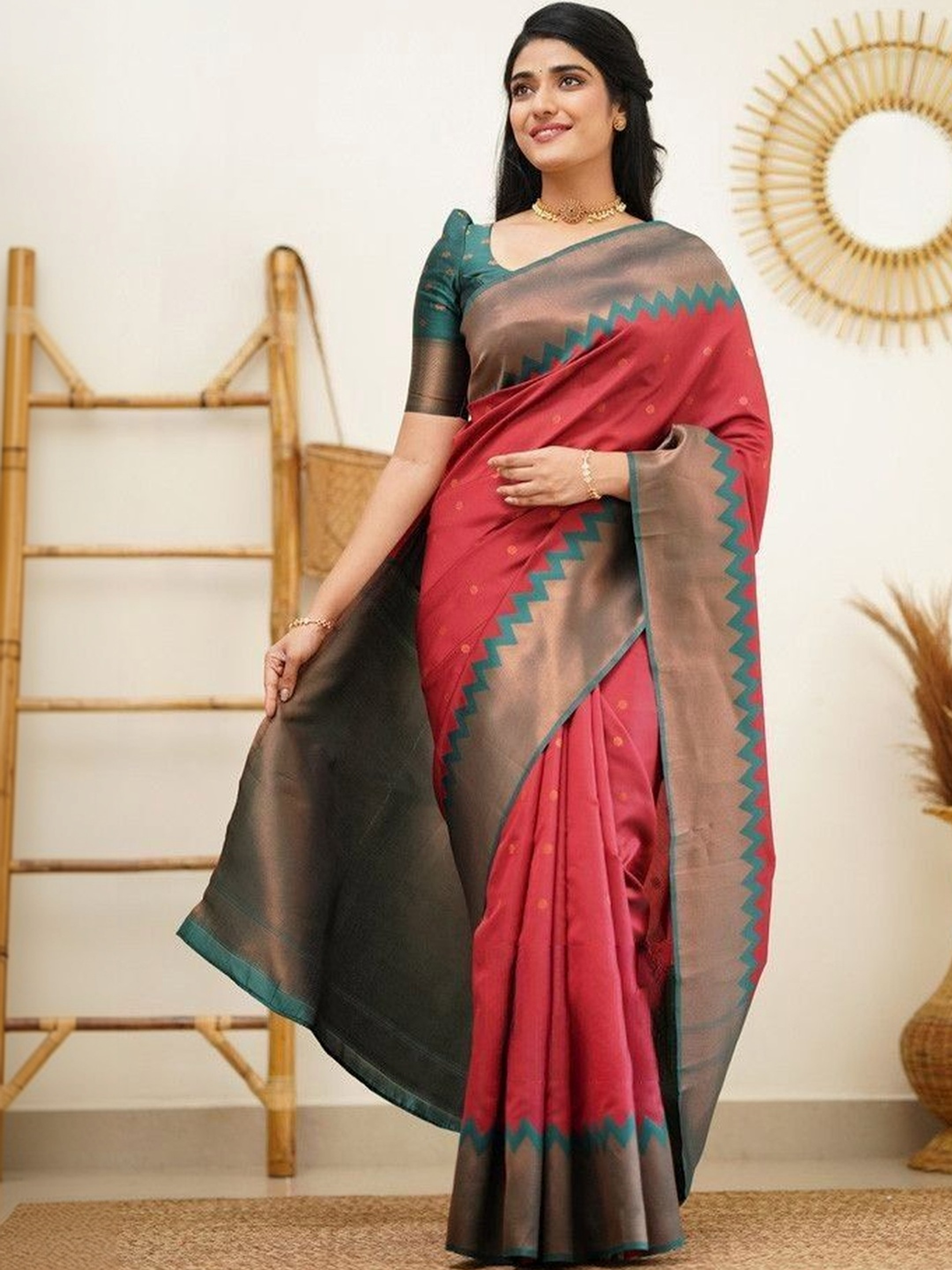 • Fabric: Saree – Banarasi Jacquard Silk | Blouse – Banarasi Silk