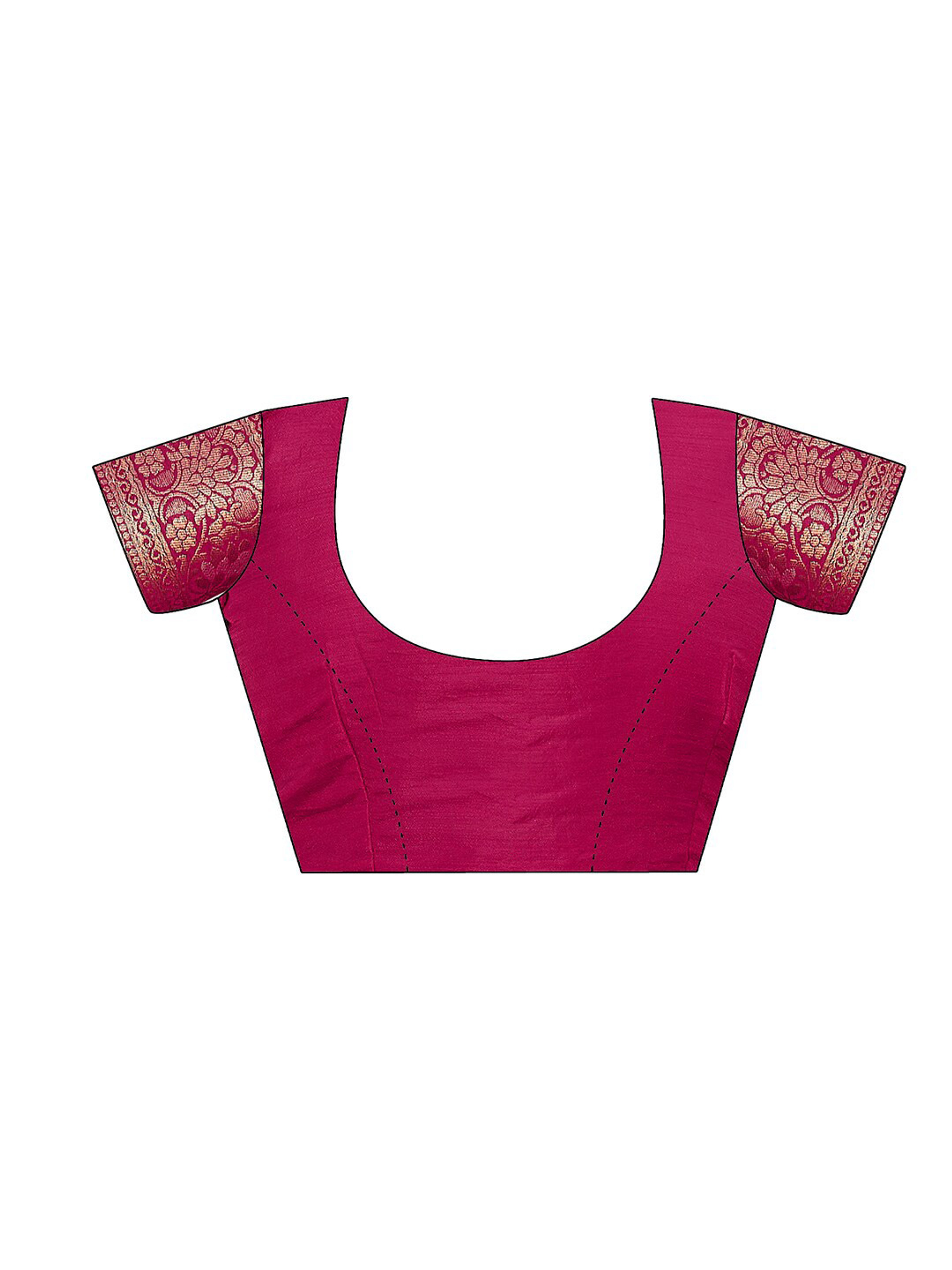 The subtle sheen of the silk blend enhances the woven motifs, making it perfect for weddings, festive celebrations, cultural events, and special occasions. The saree comes with a matching unstitched silk blend blouse piece, allowing you to customize the fit and style to your preference.