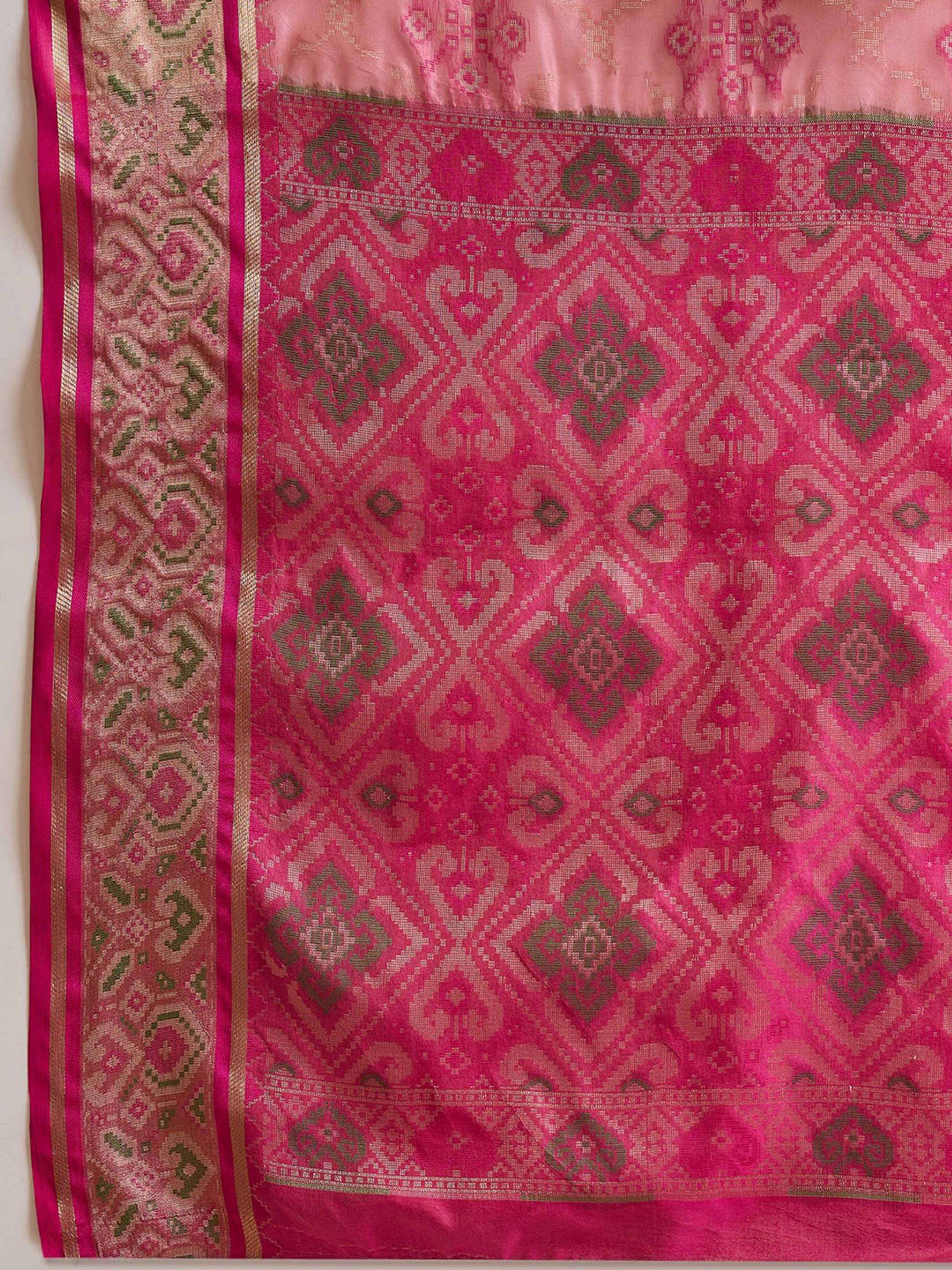 Pink Patola Organza Saree with Woven Design Border & Blouse Piece