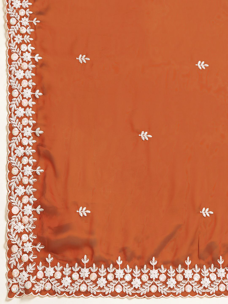 Rust & White Floral Embroidered Poly Silk Saree with Blouse Piece
