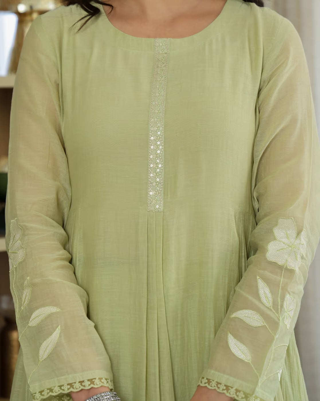 Aromie Embroidery A-Line Kurta Set in Elegant Green