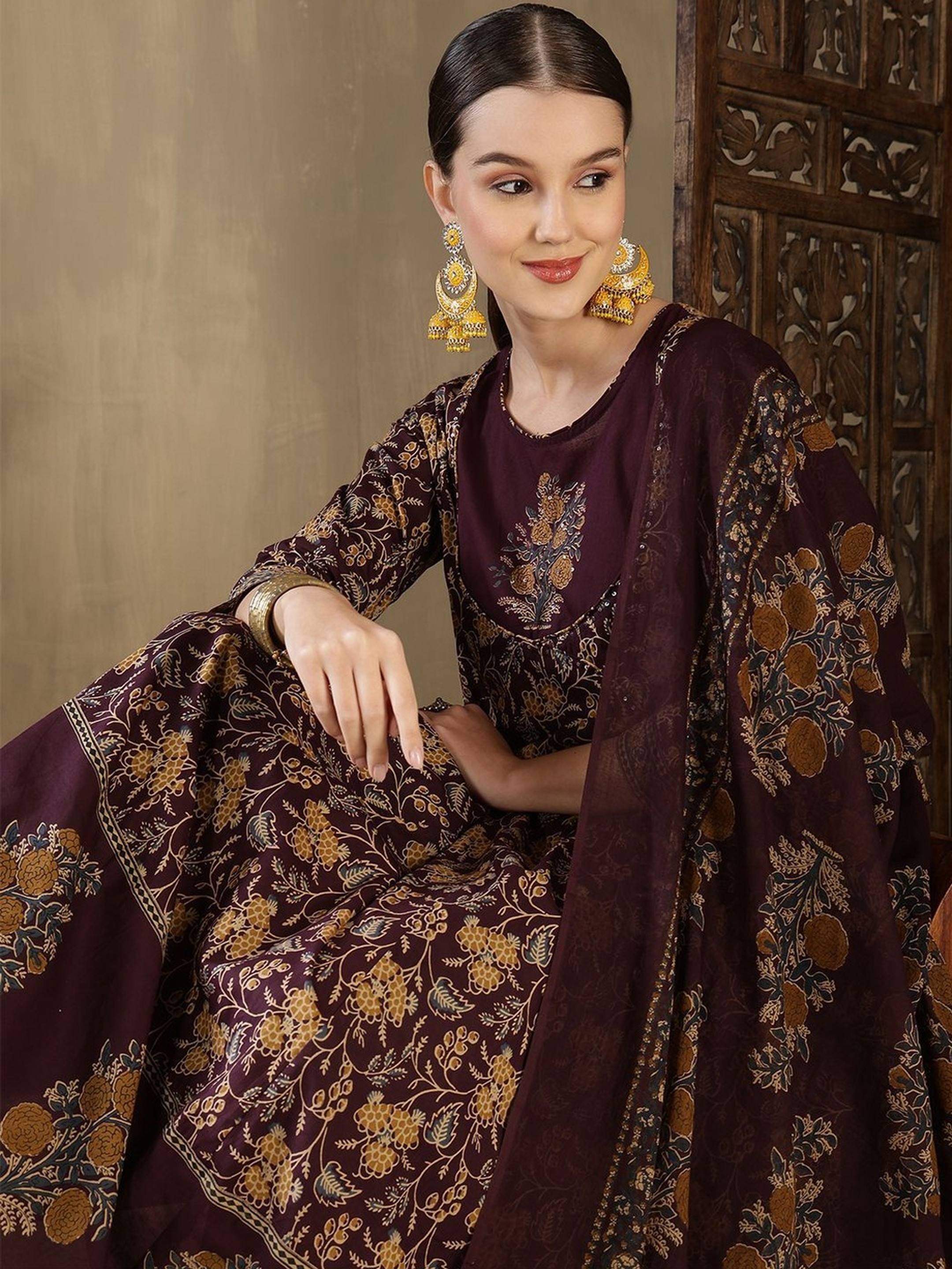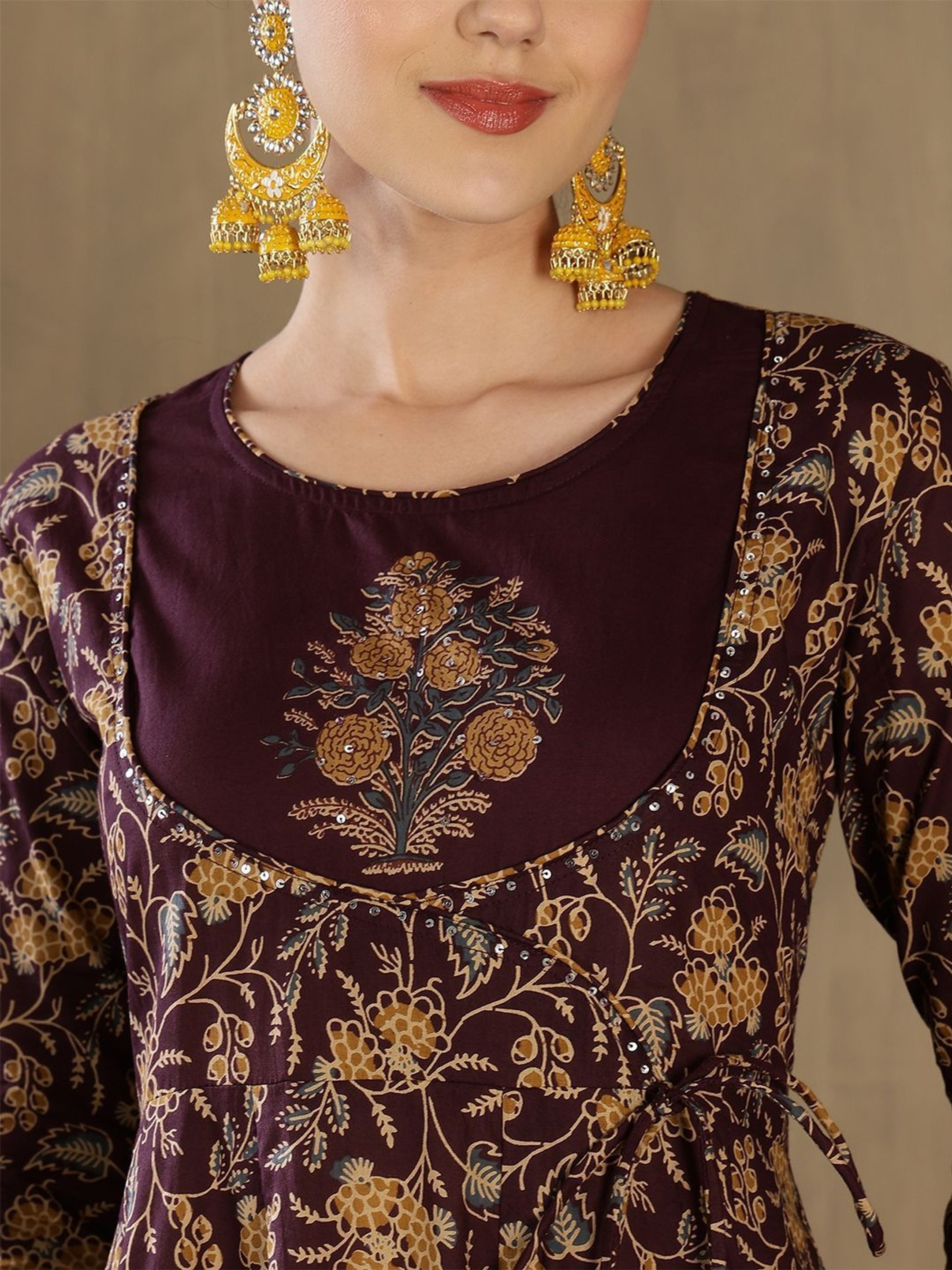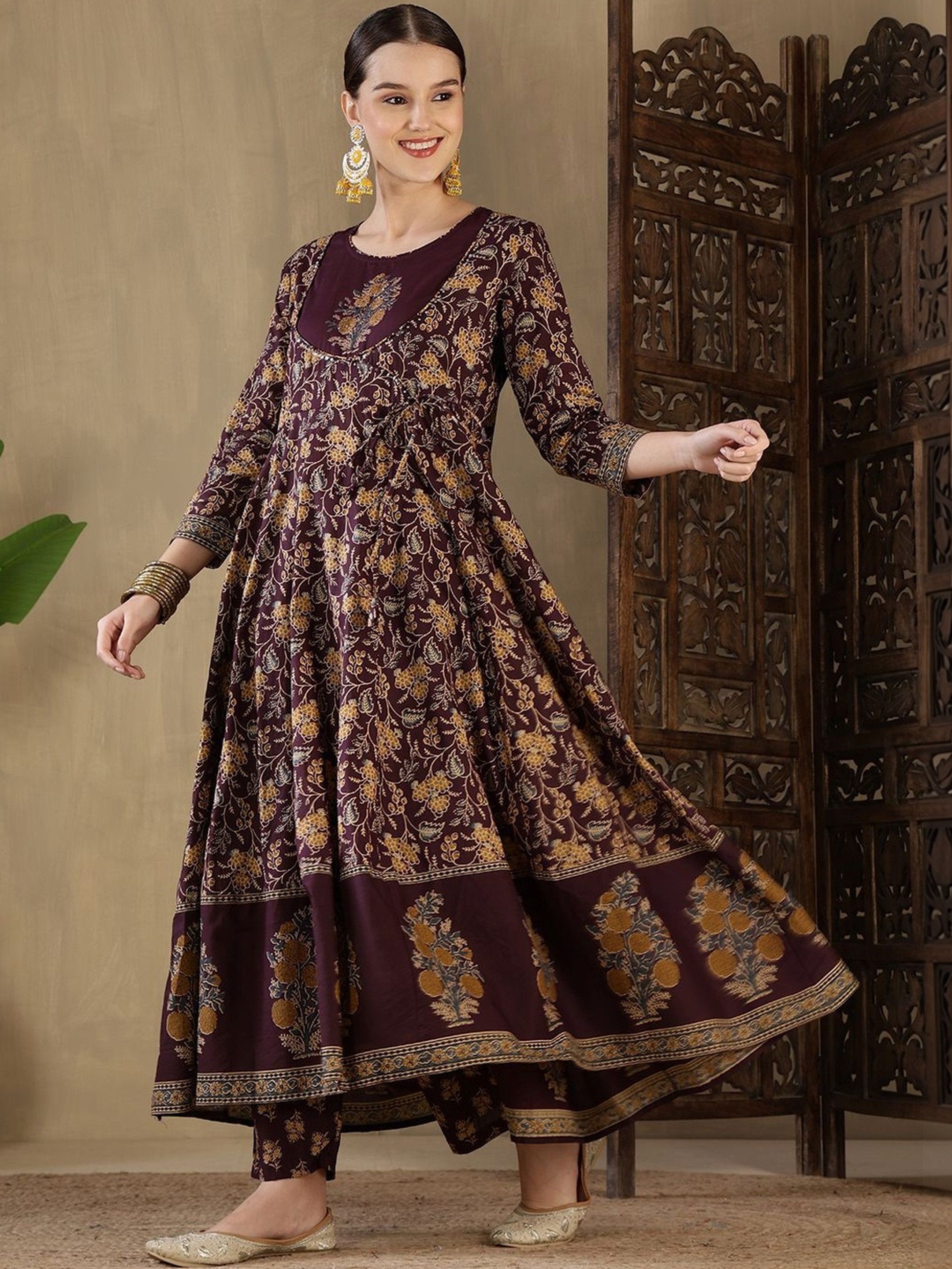 AROMIE Maroon Anarkali Kurta Set