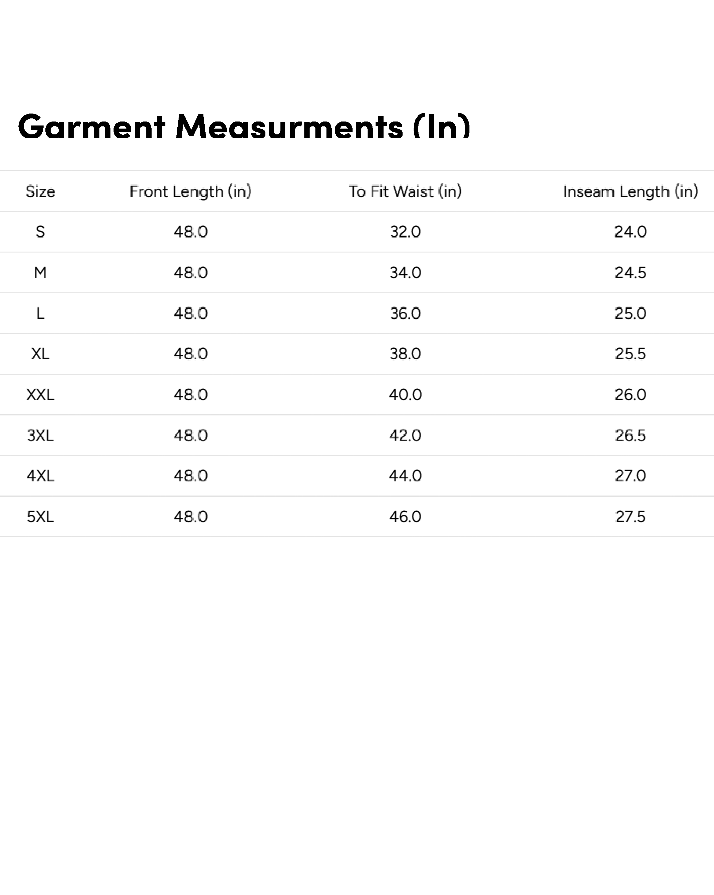 • Refer to the size chart for accurate measurements.