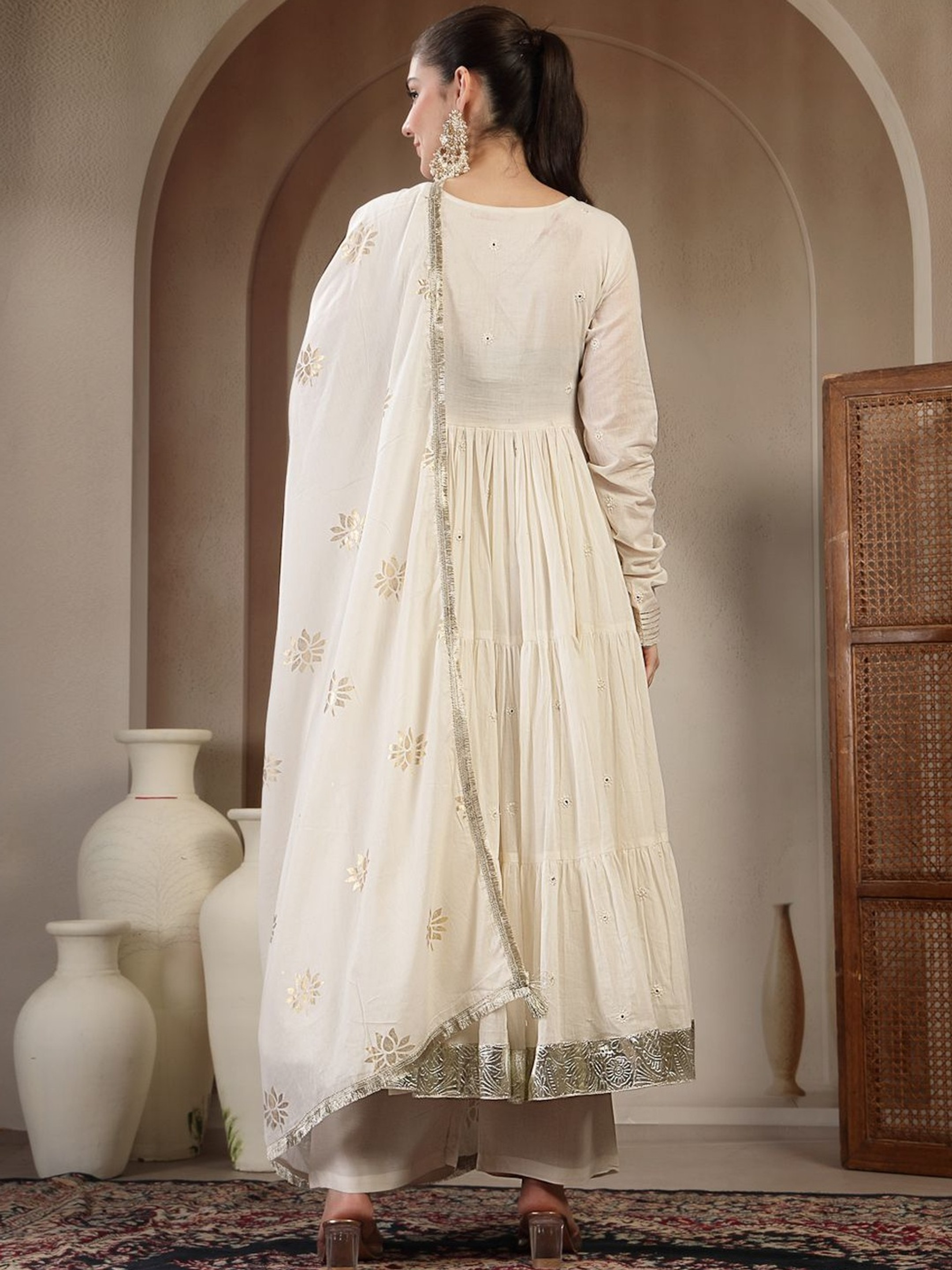 Pair the Off-White Anarkali Kurta Set Canada with your favorite jhumkas and bangles to complete the look. Whether you're attending a wedding, a family gathering, or simply enjoying a day out, this set will surely make you stand out.