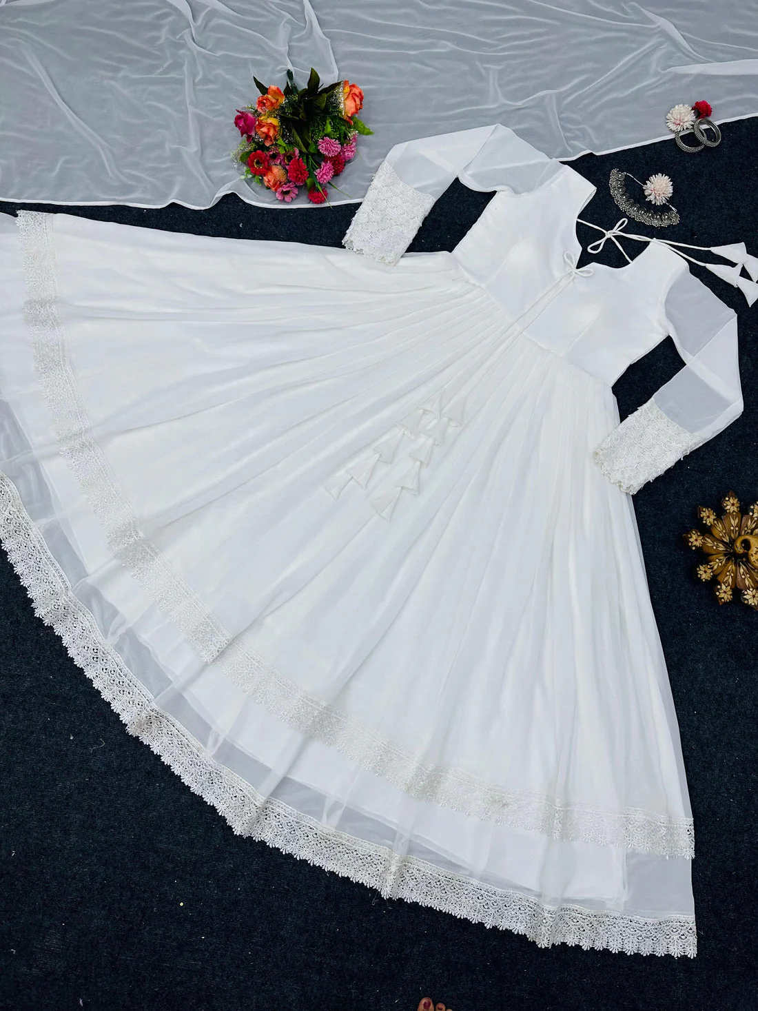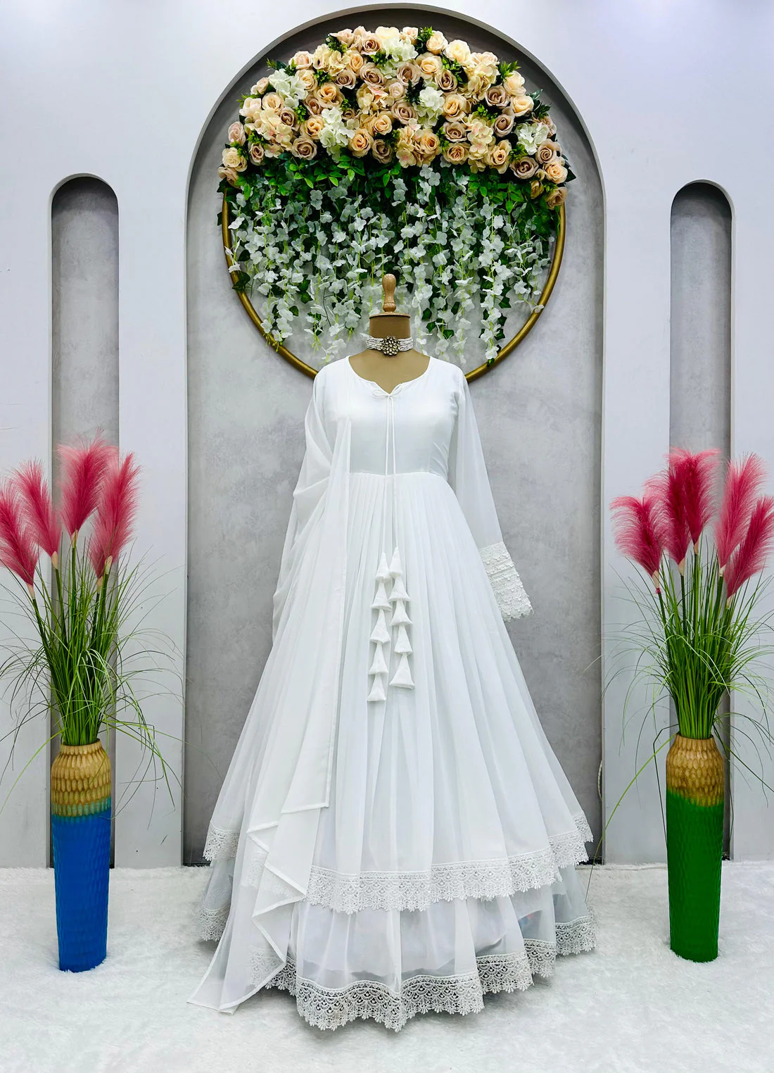 The white double layered anarkali with dupatta is more than just a dress; it's a statement of style and grace. Make it yours today and experience the blend of tradition and modern fashion.