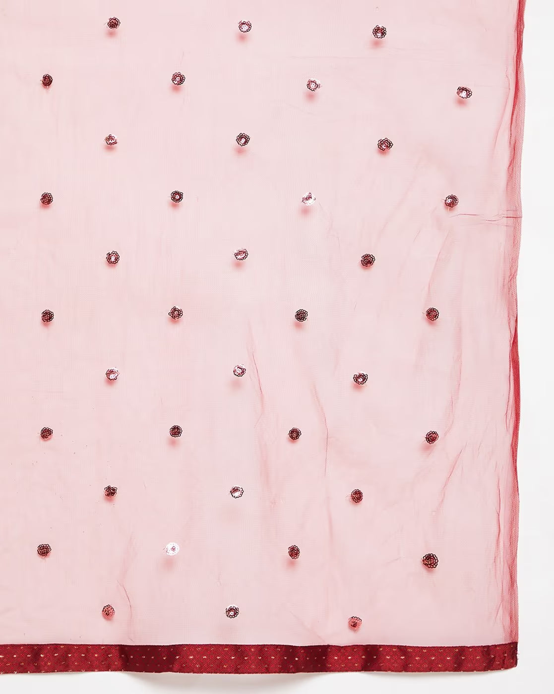 Discover the elegance of this three-piece Embellished Anarkali Kurta Set, thoughtfully designed to help you make a stunning impression. The set includes a beautifully crafted kurta paired with coordinating bottomwear and a flowing net dupatta that extends 80 inches. Crafted from quality art silk, the kurta reaches a flattering calf length while the dupatta adds graceful movement and dimension. Intricate embellishments elevate the entire ensemble, making it perfect for special occasions or celebrations. Please note that actual product colors may vary slightly from images. We recommend dry cleaning to maintain the beauty and longevity of your set.