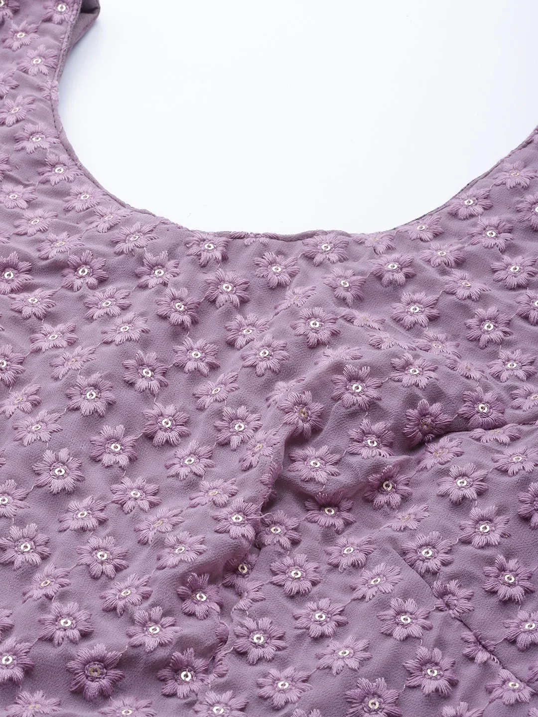 Georgette Fabric Purple Colour Semi-Stitched Lehenga with Embroidered,Sequence work & Choli with Georgette Dupatta