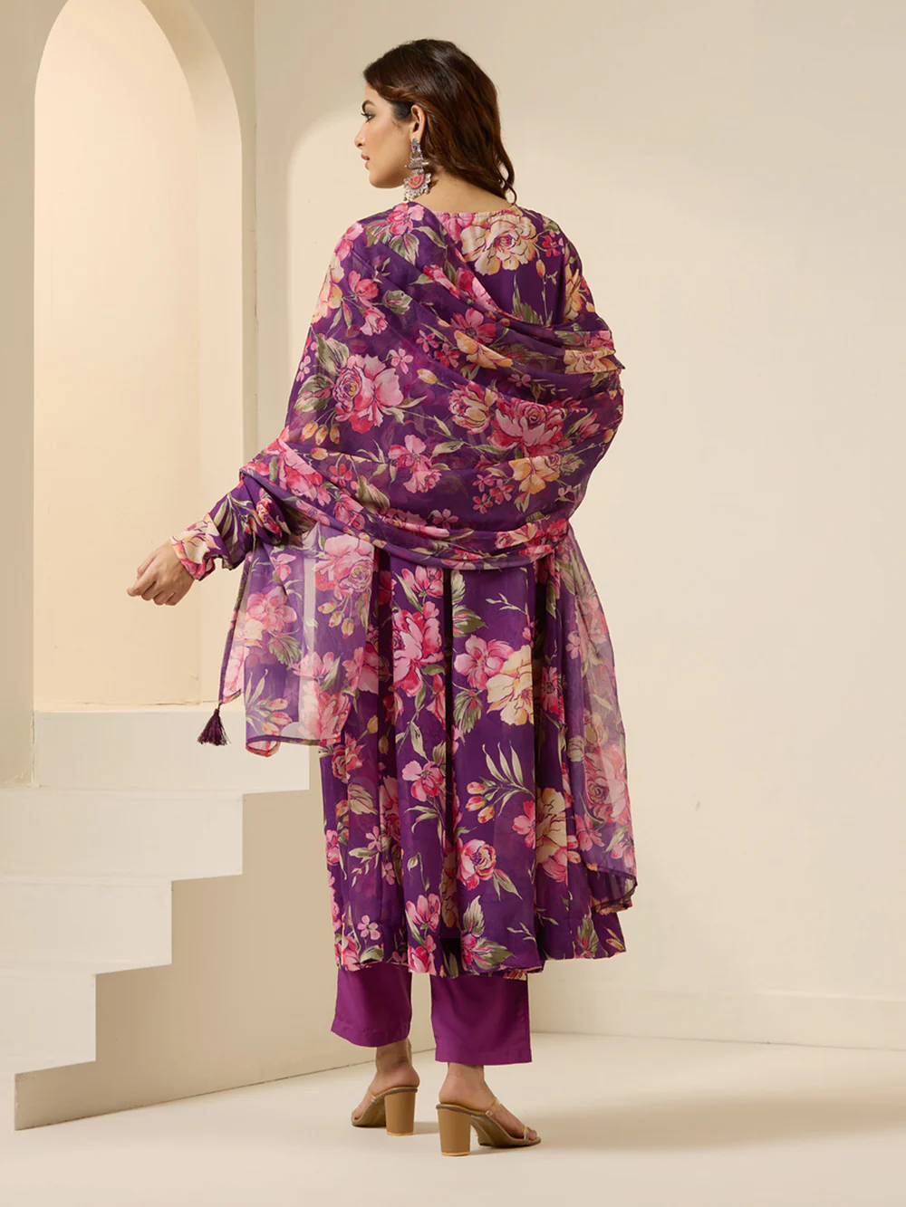 Make a statement with this charming three-piece kurta set in vibrant purple. Crafted from durable polyester, this piece showcases a modern square neckline and three-quarter sleeves that frame the face beautifully. The eye-catching printed pattern adds personality and visual interest to your ethnic ensemble. The fit-and-flare silhouette hugs the bodice gently before flowing outward, creating a flattering and comfortable shape that works for various occasions. Completed with a coordinating dupatta, this set offers versatility for celebrations, gatherings, or refined casual wear. The easy-care fabric maintains its color and quality wash after wash. Simply machine wash gently to preserve the vibrant print and fabric integrity.