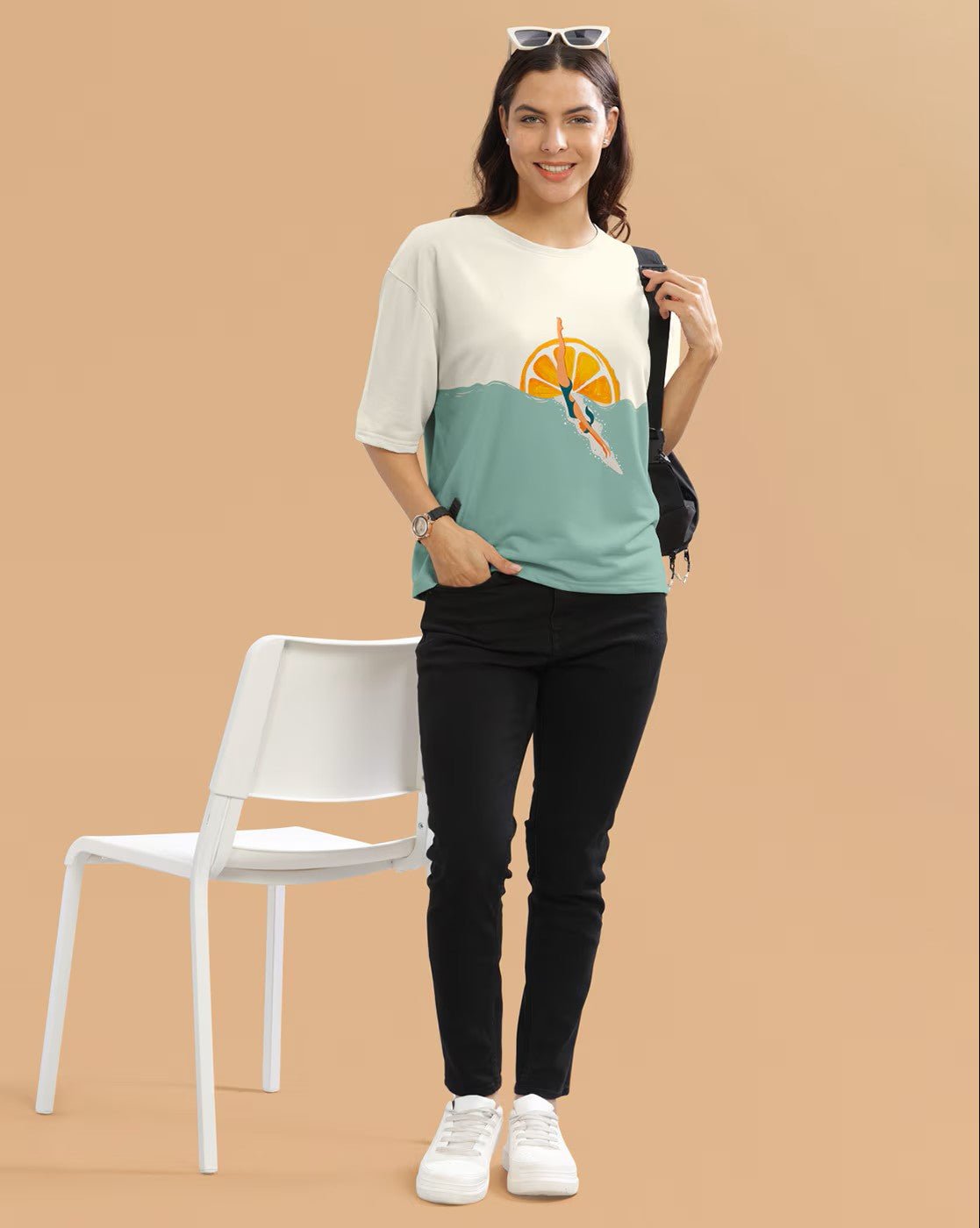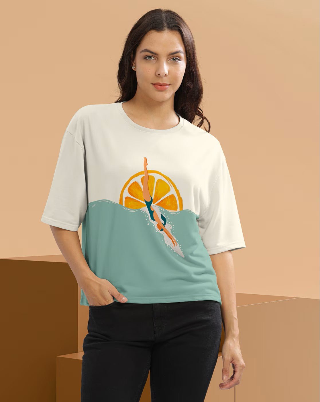 Aromie Women's Graphic Crop T-Shirt with Orange Design